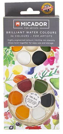 Water based dye sets, also known as Kohinor. 'Solid dyes', they look like ordinary paints, but the effect is a very concentrated Brusho - more ink than paint.