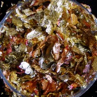 The flakes can be used in any number of ways, from traditional gilding techniques, use as inclusions in papers etc. to layering and application with adhesives.