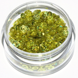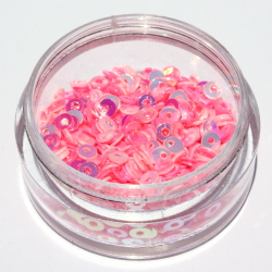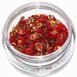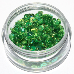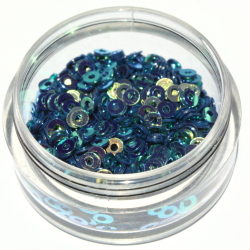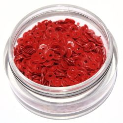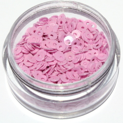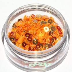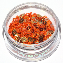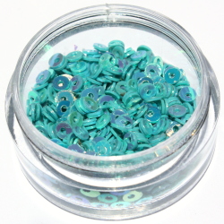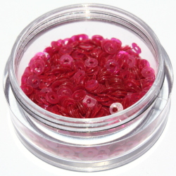 Tiny and coloured - choices shown below. Sequin diameter approximately 2.5 mm. Jars are approximately 3.8 cm diameter and 2.0 cm deep on the outside. |