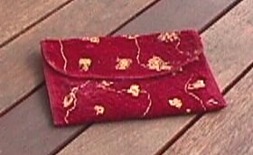 | Applying with Foil Glue Pour a small amount into a shallow container. Dip a foam brush, toothbrush, comb etc into the glue and "draw" onto the fabric to your choice.Alternatively, spread the glue onto a stamp using the foam brush and stamp it onto the fabric. When it is completely dry (it will be clear), lay the foil, colour side up, on your fabric, cover with baking paper and iron with a reasonable amount of pressure. When you pull it away you will see the foil. You can add other foil colours for a second ironing. | Applying with fusible web (Vliesofix or Bondaweb or WonderUnder) Cut shapes from fusible web and position it on fabric. Place foil, colour side up, and iron as for glue. | |