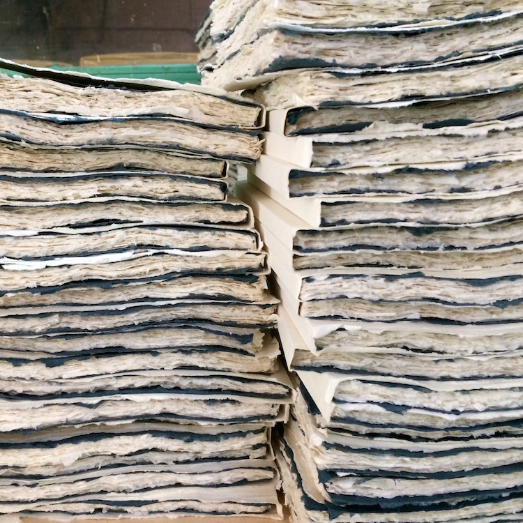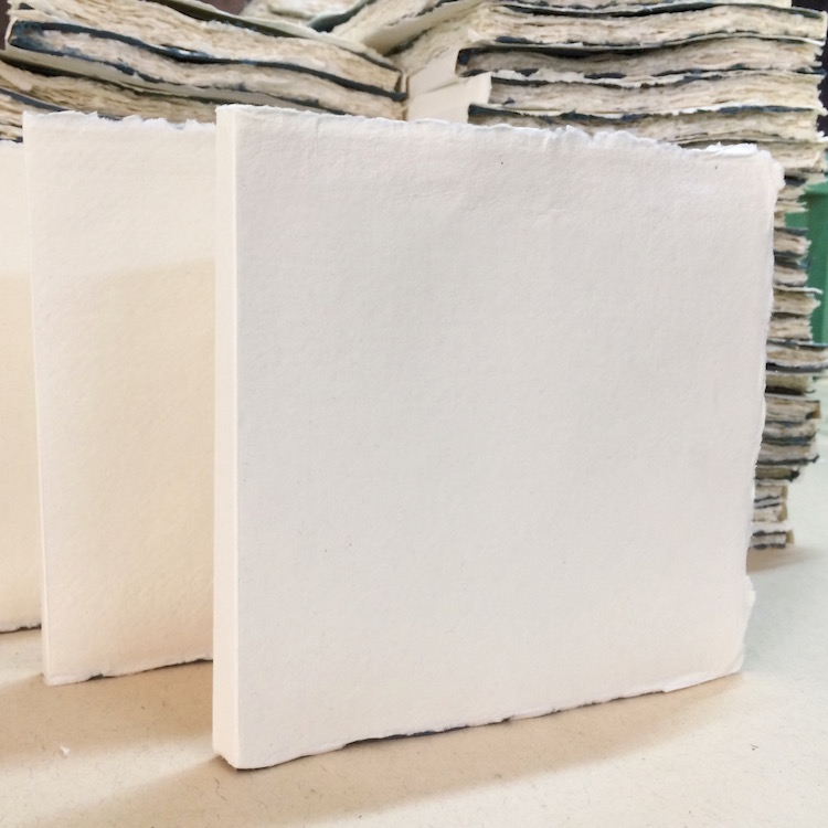 All paper is made sheet by sheet on a hand held papermaking mould.