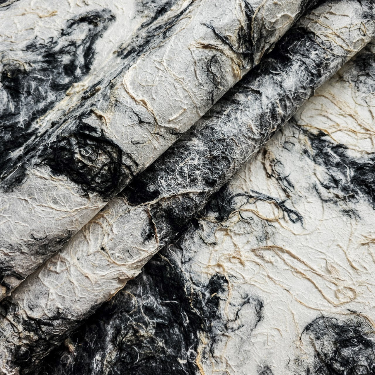 Featuring a bold interplay of black and white fibers on a richly textured surface, this mulberry paper brings an organic, earthy depth to any project. The raw, fibrous texture enhances tactile appeal, while its natural tonal contrast adds visual intrigue, making it ideal for standout mixed media compositions.