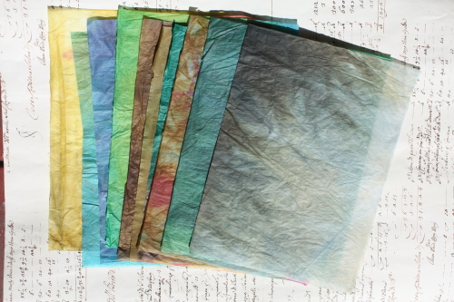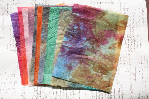 Abaca Paper Handdyed $11.00 ($10.00) / set of ten sheets Currently out of stock. More coming before too long.