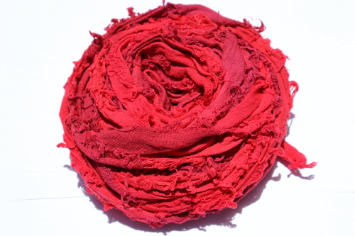 Textured, woven cotton tape with fuzzy frayed edges. Tape width is about 3 cm with an extra 1.0 - 1.5 cm of frayed edging.