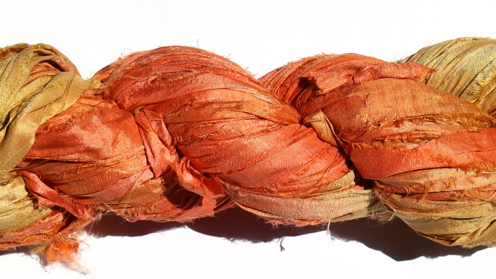 High quality pure silk hanks. 50 - 60 metres / hank. Ribbon width varies, but is approximately 2 cm.