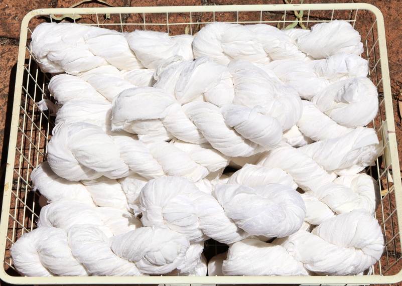 These hanks are wedding chiffon and of the best quality. Great for dyeing, weaving, wrapping, knitting - or anywhere.