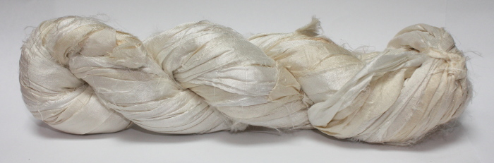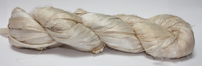 Silk sari fabric, approximately 2 - 3 cm in width. 50 metres per hank.
