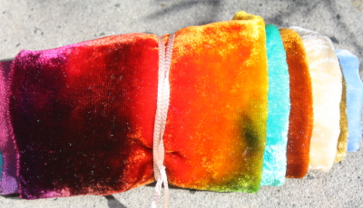 Eclectic collection of hand dyed, silk velvet packs of six.