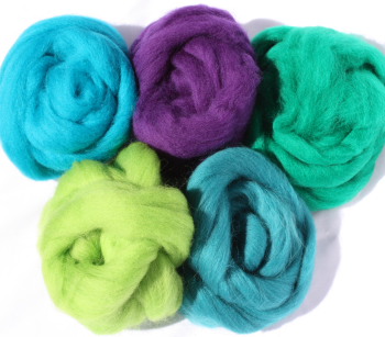 Felting Adventures $20.00 ($18.18) / kitA wonderful way to learn wet felting. Each kit consists of: Full instructions 5 x 30 g corriedale wool Netting and bubblewrapFive choices of themes shown below.
