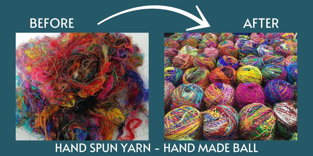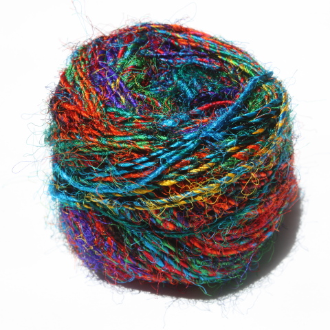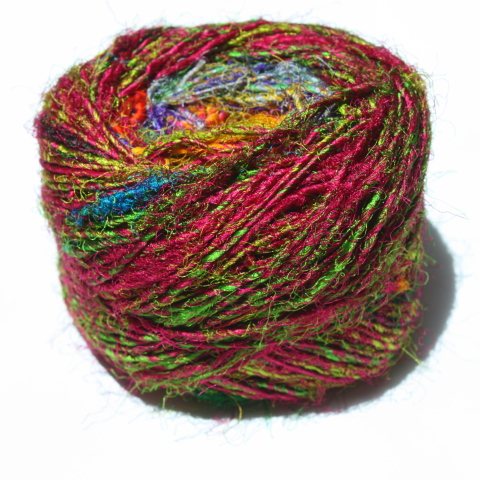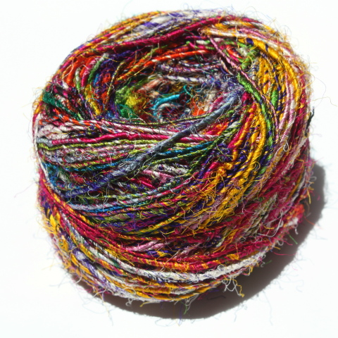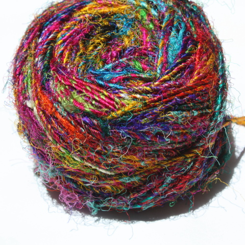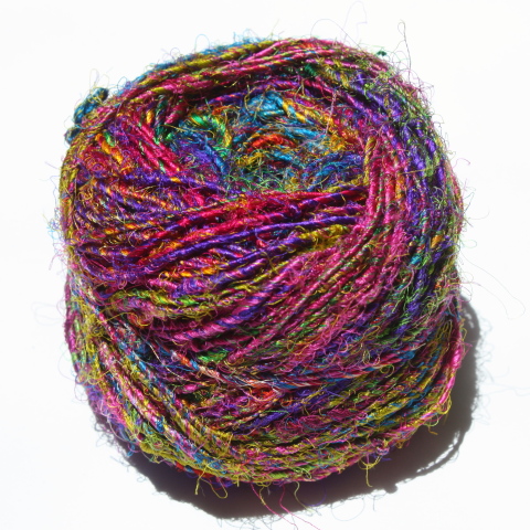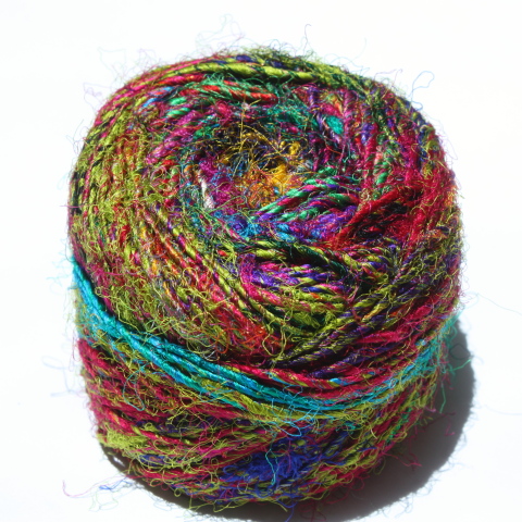 Sari Silk Yarn hand spun from mulberry silk waste in a myriad of fabulous colours on 100 gram balls (approx 80 metres). Use for knitting, weaving, couching, cord, plaiting, you name it - - . All balls are different. Six typical ones are shown below to give an idea of the range of colours.