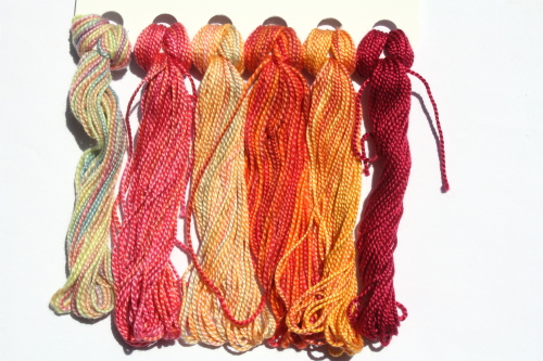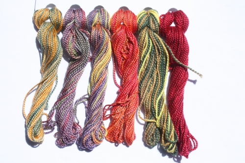 hand dyeing beautiful threads in small batches.