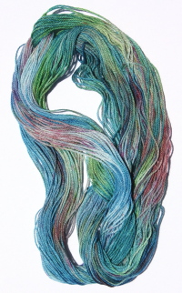 | Cotton á Broder (Cotton Speciale) is a 4ply, non-strandable, slightly twisted thread with a soft sheen. It is a round, mercerised thread and does not lie flat on the surface, thus making a very nice structure. It is used by many designers in books and kits. It has roughly the same size as flower thread. Use short lengths of thread so the thread does not lose its sheen. Very popular for cross stitch, white work, drawn and pulled thread, needlepoint lace and hardanger embroidery. This Cotton á Broder is made from high-quality egyptian cotton and dyed by Painters Threads. 25 metres per hank. |  |