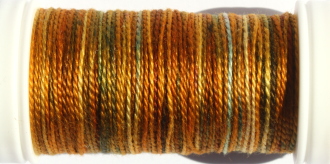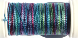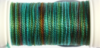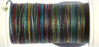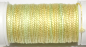 Re-twist now and again while you work with this thread,this keeps the beadlike structure and the sheen.