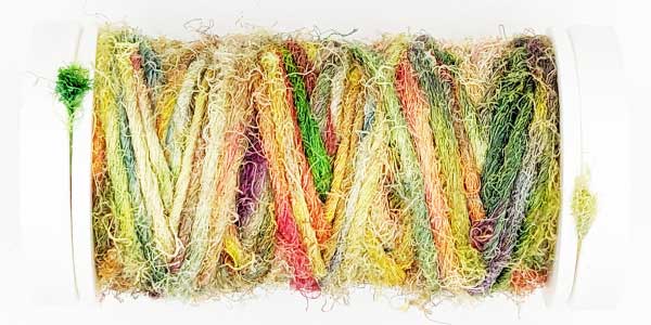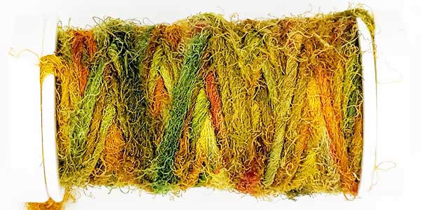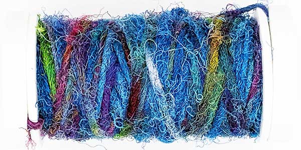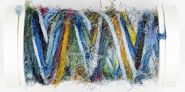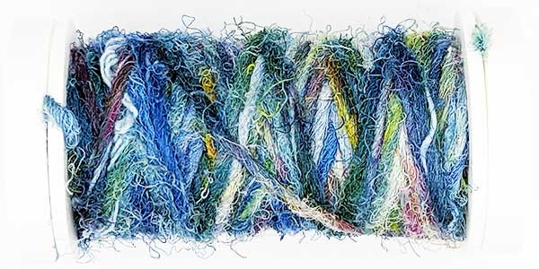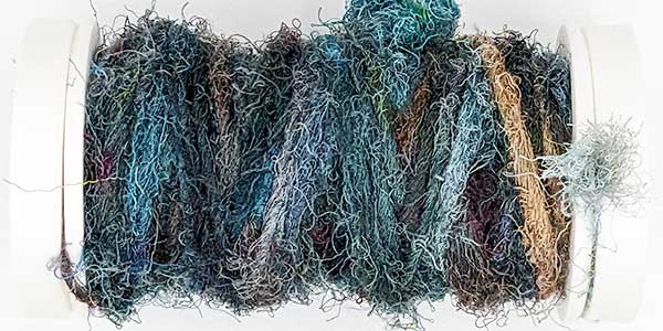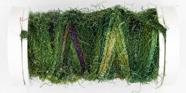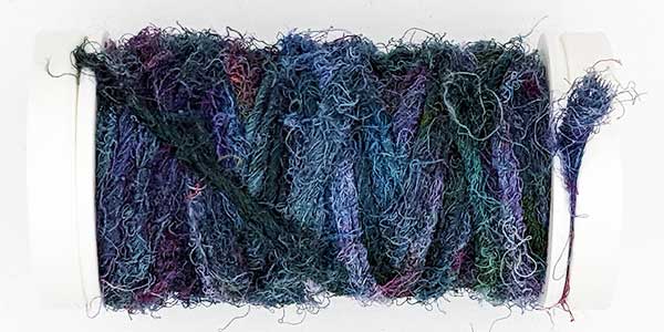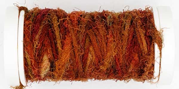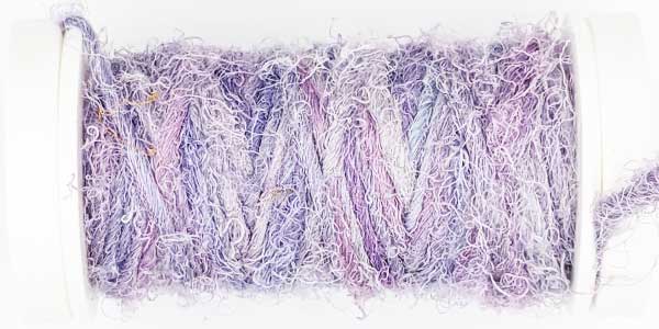 Silk Whisper is spun from recycled silk chiffon. A great, unevenly spun effect thread that can be used for almost all textile techniques. Coral knots, chain stitch band, woven band, couching techniques - with the right needle it becomes child's play.