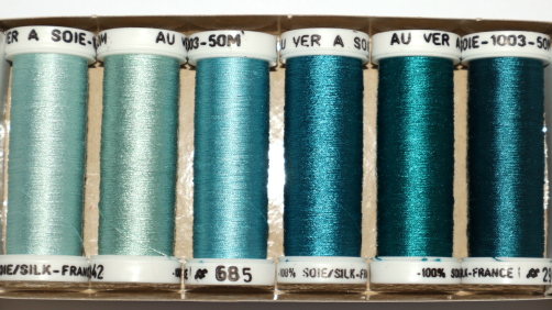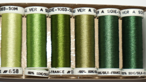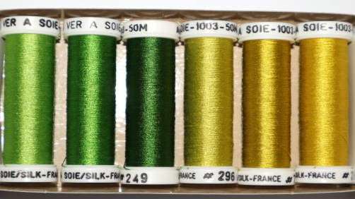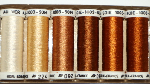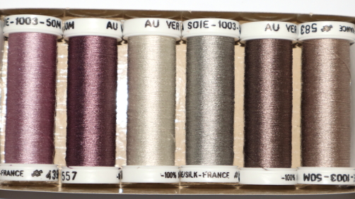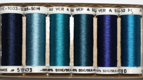100% tightly twisted spun silk, similar to buttonhole thread. Fabulous for needlework. Trenty three choices of colour themed packs. Made in France.
