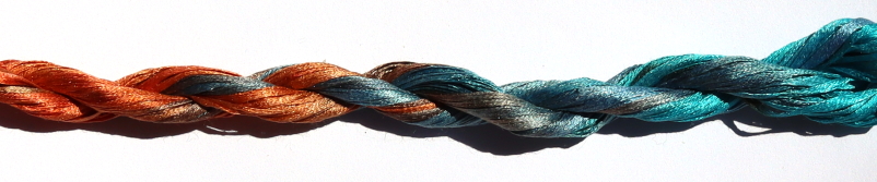Silken Straw is a hand-dyed straw silk fibre. Silken Straw stitches beautifully into a 13 or 18 count canvas.