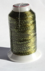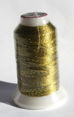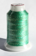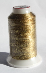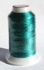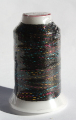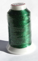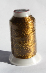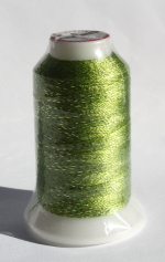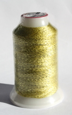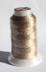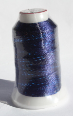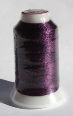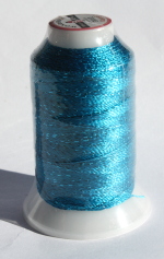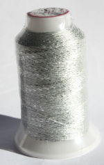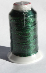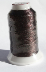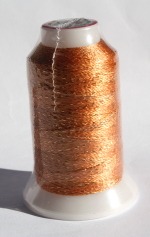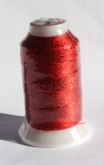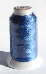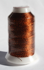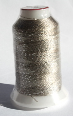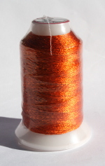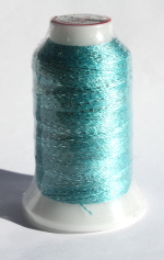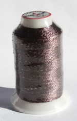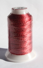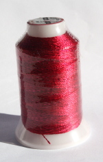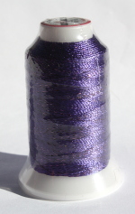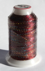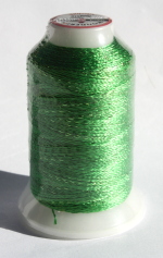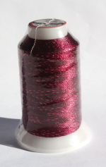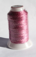 12 wt, 2-ply rayon with one strand of metallic. 274 metres per spool, 40 colour choices.