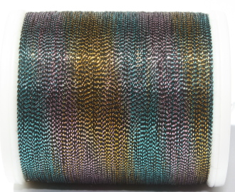 FS #20 is an elegant, exceptional quality, soft metallic thread made from velvety spun rayon wrapped by an extra fine metallised foil.