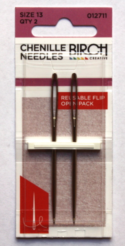 These are large eye size 13 needles with sharp points for ribbon embroidery and crewel work. The sharp point will pass through coarse fabrics. Perfect for using with Gimp.