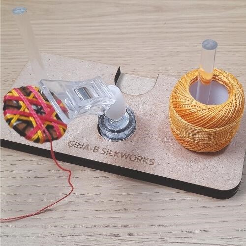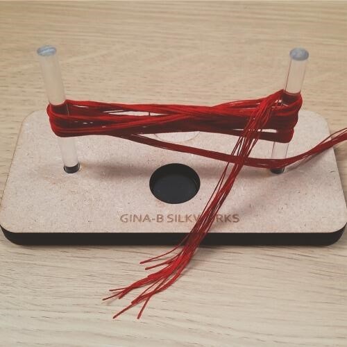 A neat recess on the station allows you to clamp it to your desk (clamp not supplied). This means you can use the pair of posts to hold warps for satin wrapping at tension and even combine the posts and "Third Hand" to hold threads at tension while working other advanced techniques such as "gorl".