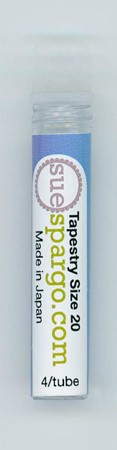 | Short Darner size 11 The ultimate balance between strength and flexibility. Made in Japan, the exceptional quality of these needles is incomparable. With a gold, slightly longer eye, threading these needles is a breeze. Double polished for superior performance, along with their extremely sharp point, needle-turn appliqué of cottons, silks, velvets, linen and other specialty fabrics becomes effortless.Size 11; longer eye Short Darner pack of four: $4.50 ($4.09) | | Long Darner size 1 These needles are made in Japan and double polished for exceptional performance. The long length of these needles allows for stitching extra long stitches such as Drizzle Stitches, Bullion Knots and Woven Picots.Size 1, extra long length Long Darner pack of four: $8.00 ($7.27) | | Short Darner size 9 Sue's new Short Darner size 9, is the ultimate balance between strength and flexibility. Made in Japan, the exceptional quality of these needles is incomparable. With a gold, slightly longer eye, threading these needles is a breeze. Double polished for superior performance, along with their extremely sharp point, these needles make embroidery + beading stitches so easy.Size 9, long gold eye Long Darner tube of four: $4.50 ($40.90) | | Gold Eye Chenille size 18 Sue's new Gold Eye Chenille #18 needle has a large oval eye, double polished body and ultra-sharp point. Combined, these properties have produced a needle, finally, worthy of handling all of those heavier threads we love to embellish with. Size 18, long oval eye Gold Eye Chenille tube of four: $5.50 ($5.00) | | Gold Eye Chenille size 24 Sue's new Gold Eye Chenille #24 is the must have needle for wool appliqué and embroidery. Its gold eye allows for easier threading, and its ultra-sharp point pierces through multiple layers of wool with ease. As with her entire collection, these needles are made in Japan and are double polished for exceptional performance. What's the need for a #24 Chenille needle? The Chenille #24 is by far our most widely used needle. Use with Ellana wool thread for wool applique and for all embroidery stitches (excluding wrapped/cast-on) utilizing size 8 equivalent threads.Size 24, long oval eye Gold Eye Chenille tube of four: $5.50 ($5.00) | | Gold Eye Milliners size 1 Made in Japan, these needles are uniquely designed with a large, gold eye for easier threading. Double polished for exceptional performance, these Milliners offer effortless piercing through multiple layers of wool and other fibers.Size 1, longer eye Gold Eye Milliner size 1 pack of four: $5.50 ($5.00) | | Gold Eye Milliner size 3 These needles are made in Japan and double polished for exceptional performance. The Gold Eye size 3 is also a wonderful alternative to the Chenille size 24 for embellishing and stitchery if you suffer from hand fatigue or cramping.Size 3, large eye Gold Eye Milliner size 3 pack of four: $4.50 ($4.09) | | Gold Eye Milliner size 15 These needles are made in Japan and double polished for exceptional performance. The size 15 is the ultimate solution to handling and embellishing with thicker threads. With its uniquely designed extra large, gold eye, threading and stitching with Pearl Cotton 3, Pearl Cotton 5, Gimpe and Oriental Linen is a dream!Size 15, extra large eye Gold Eye Milliner size 15 pack of four: $6.50 ($5.91) | | Gold Eye Tapestry #20 Joining Sue's line of needles are Gold Eye Tapestry Needles in size 20 and 24. Made in Japan, these needles are uniquely designed with a large, gold eye for easy threading. Size 20, extra blunt tip to avoid splitting fibers. Blue and purple tube = use with blue and purple spools (size 5 and 3 Eleganza) Gold Eye Tapestry #20 pack of four: $4.50 ($4.09) | | Gold Eye Tapestry #24 Joining Sue's line of needles are Gold Eye Tapestry Needles in size 20 and 24. Made in Japan, these needles are uniquely designed with a large, gold eye for easy threading. Size 24, extra blunt tip to avoid splitting fibers. Green tube = use with green spools (Size 8 Eleganza) Gold Eye Tapestry #24 pack of four: $4.50 ($4.09) |