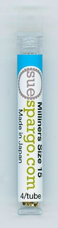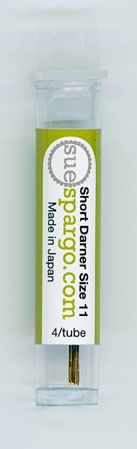 | Sue Spargo Needles Prices shown beside each pack. | Made in Japan, gold eye and double polished, these are of the best quality needles available today. We have the Gold Eye Milliner in three sizes, and the Short Darner and Long Darner. They come in their own packs, so you will never lose a needle. Each pack contains four needles. Pictures and more details below. |