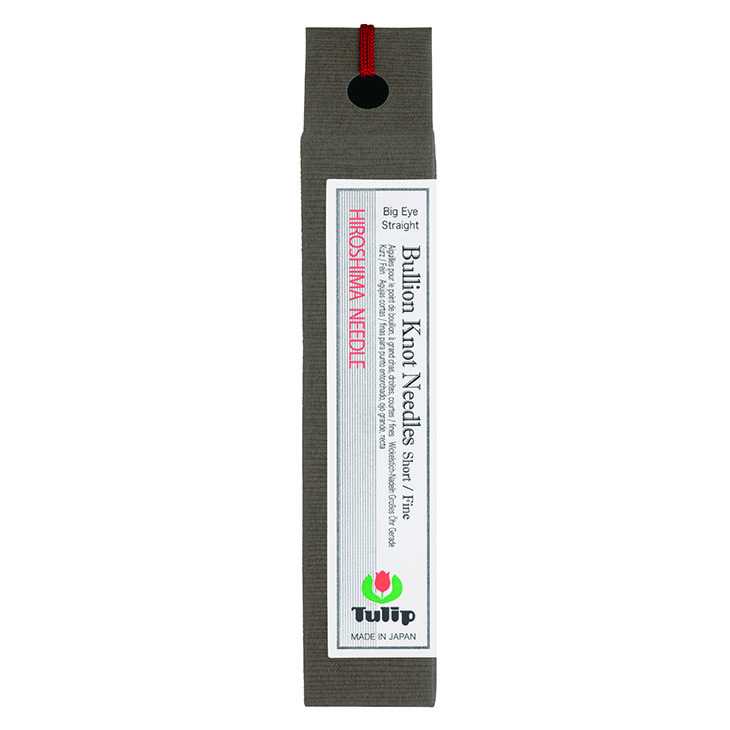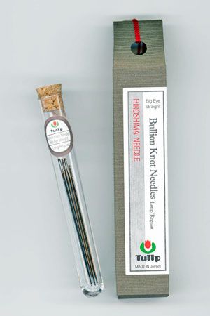 Pack of four. | | TULIP Bullion Knot Needle. Short / Fine Each vial contains two needles with two different lengths. Nickel-plated Steel 0.91mm x 51.5mm (2) 0.84mm x 51.5mm (2) Package Size : 25mm x 135mm x 25mm Pack of four. |  | Tulip Embroidery Needles Assorted Eight sizes per tube - one each of: - #3 0.97mmx44.5mm