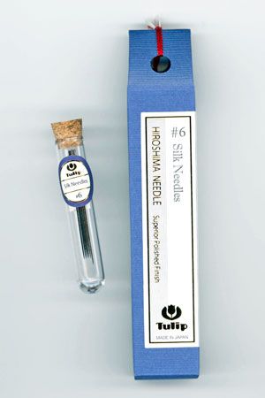 Pack of six. | | TULIP #6 Silk Needles The Tulip #6 is an amazing sturdy, warp resistant, fine needle, which is a must have for hand appliqué. Ideal for any 60-100wt cotton and silk threads; as well as 60wt. cotton applique thread, Efina cotton thread and Invisafil. TULIP #6 Silk Needle Specs: - Superior Polished Steel