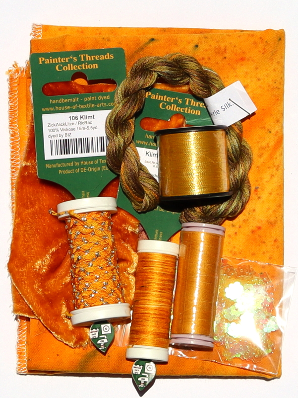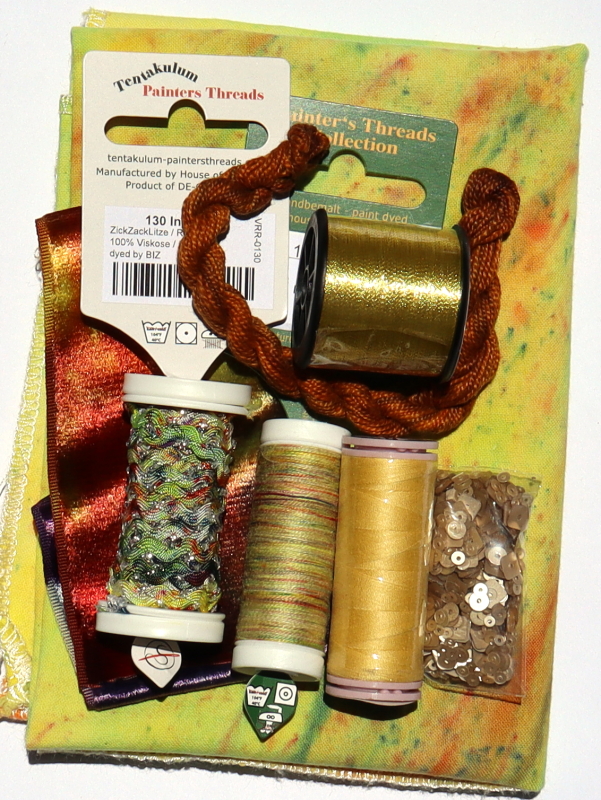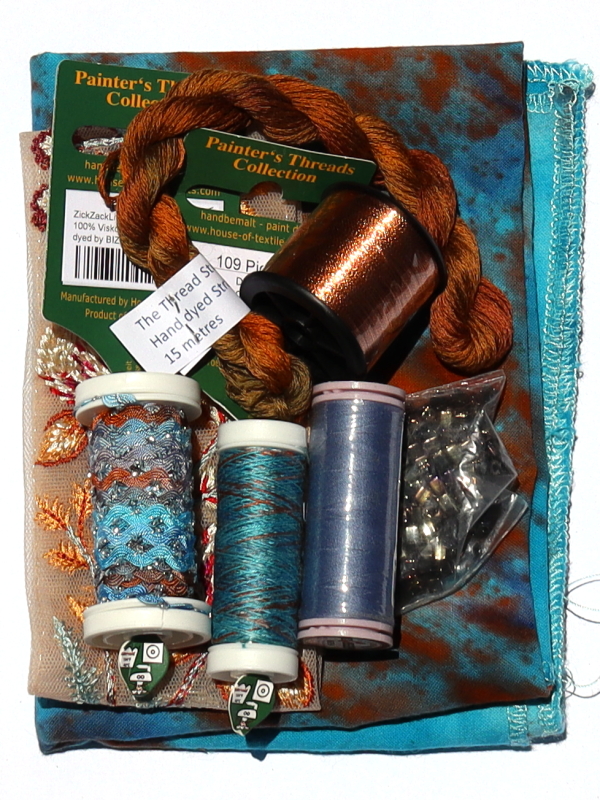 Plus an assortment of hand dyed threads and embellishments in matching colours.