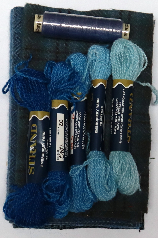 Wooly Treasure Bags - hand dyed wool fabric and wooly threads to match plus embellishments.