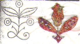 • Paint designs onto the surface (eg use a printing block and acrylic paint) and stitch on these for motifs or lay over fabric and stitch for 3-D results.
